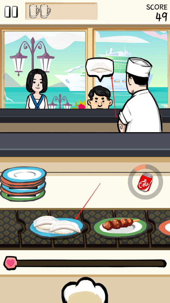 1、在厨师背对时,点击对应食物让小猫偷吃,出现的可乐的时候吗,小猫喝下则偷吃的速度会变快。