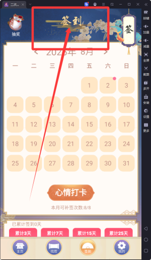 1、每日上线第一时间要查看您的签到奖励哦,得到大量资源,方便后续游戏体验哦。