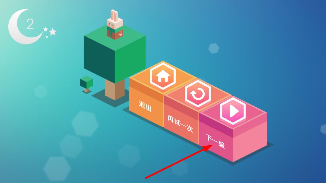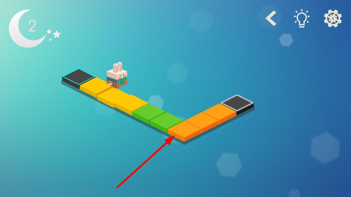 2、中期关卡中规划方块搭建路线,合理摆放不同颜色方块形成通路,避开空隙,确保小兔能沿搭建的路径跳跃前进。