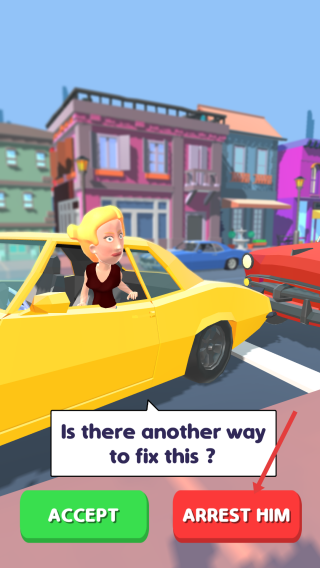 3、当面对违规者的询问时,根据情况选择合适的处理方式,如点击ACCEPT按钮接受某种解决方案,或点击ARREST HIM按钮对违规者进行逮捕,维护交通秩序和游戏中的执法规则。