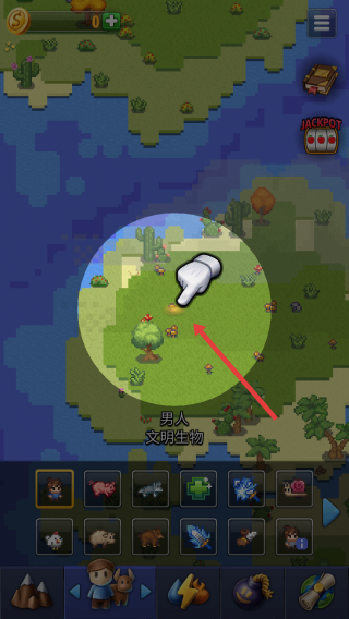 2、点击土地,选择他要出生的地方,在放置居民后,可进行各种操作,准备建造建筑。