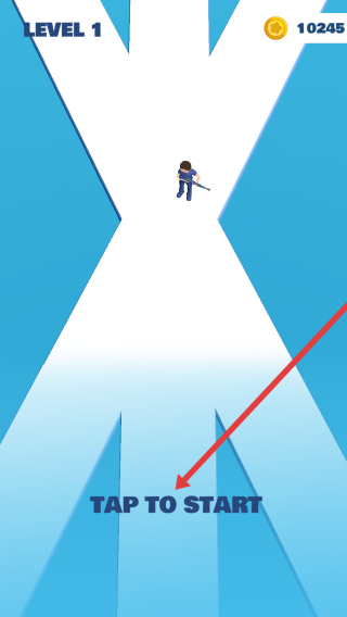 1、点击TAP-TO-START按钮开启LEVEL-1,操控角色踏上闯关路,此时金币为10245,准备迎接前方未知障碍考验。