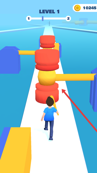 2、面对旋转的红黄色障碍,需抓准时机,在其间隙转动时迅速穿过,凭借反应力躲避撞击,利用手中道具灵活突破这一关卡阻碍。