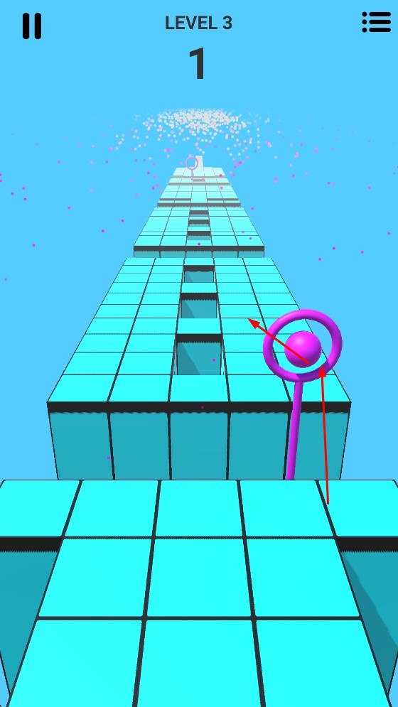 2、引导球体穿过紫色圆环获取分数,同时注意路径障碍,合理规划移动路线。