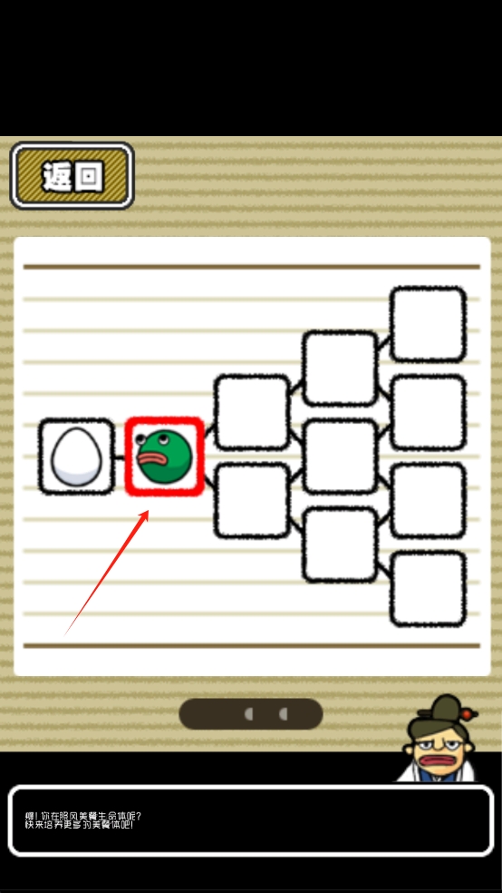 2、进入档案馆的进化树界面,绿色美食体处于蛋进化后的阶段,观察其在进化分支中的位置,为后续进化方向做规划。