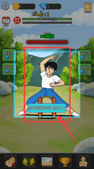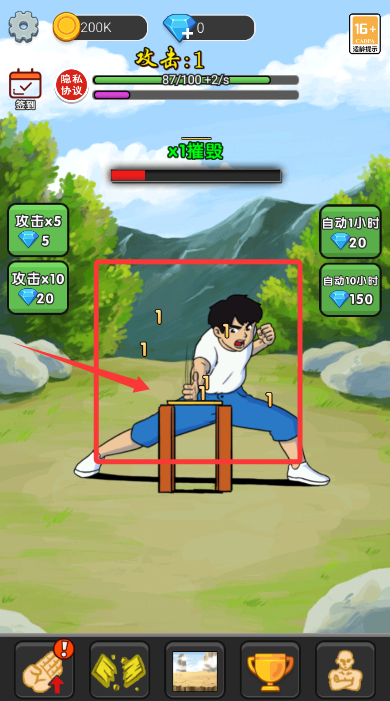 3、连续点击触发连击效果,通过重复操作提升攻击力数值,推动关卡发展。