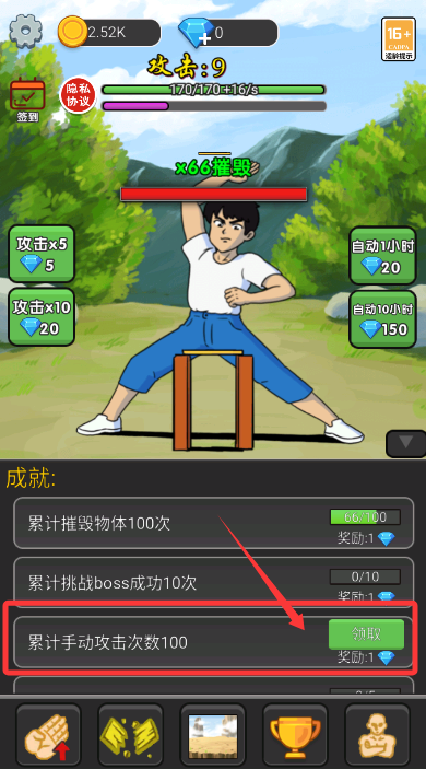 4、完成指定攻击次数后,前往成就系统领取相应奖励,用于角色能力提升。