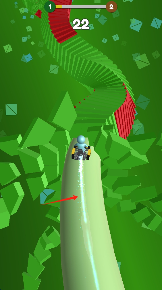 2、在赛道行驶中,灵活操控,躲避障碍,收集道具,提升速度,争取更好成绩,滑动移动人物。