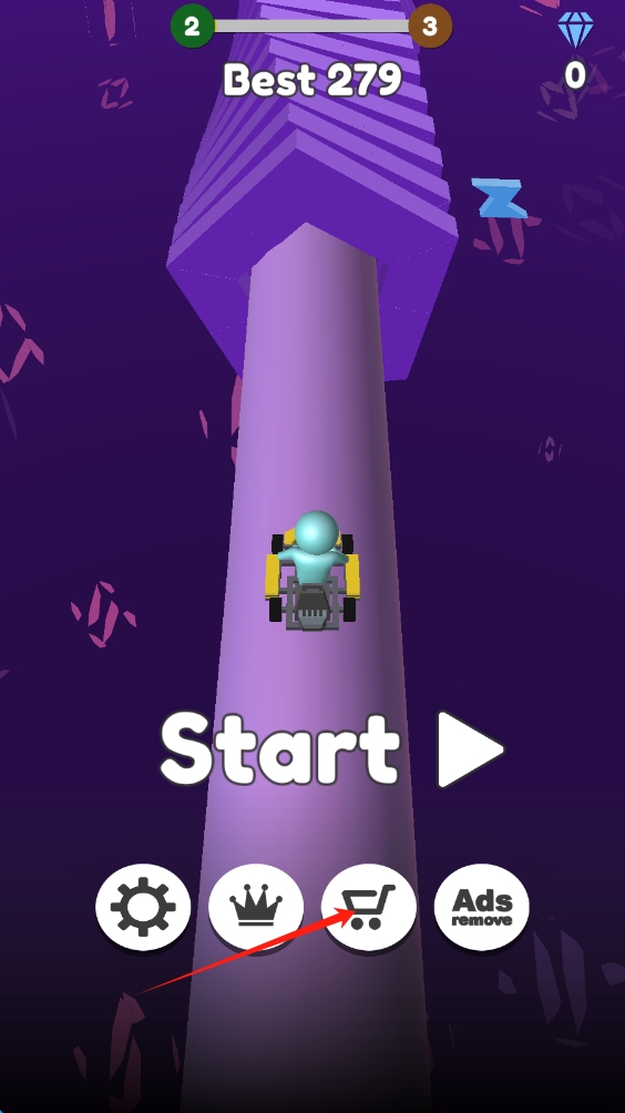 3、完成当前关卡后,点击Start进入下一关,可利用购物车图标购买道具,助力后续挑战。