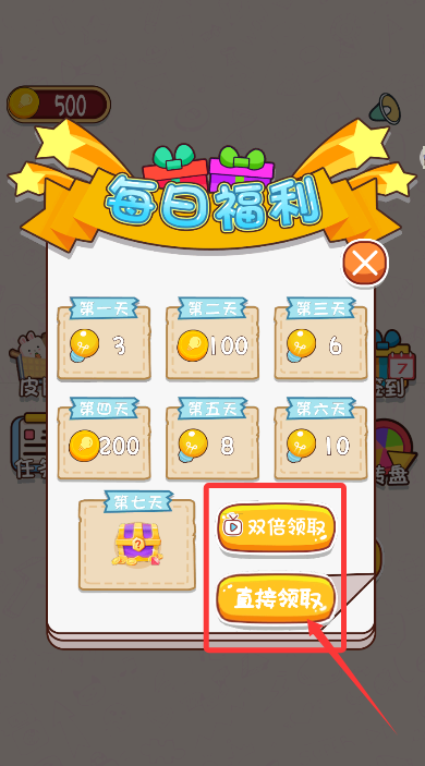 1、登录游戏后,前往"每日福利"页面,根据需求选择立即领取或双倍获取奖励道具。