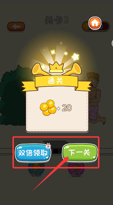 4、完成挑战后,在结算界面选择继续闯关或双倍获取奖励,推进游戏进度。