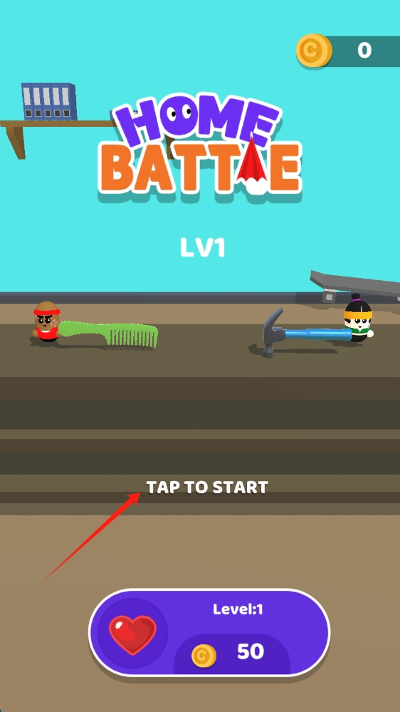 1、点击TAP-TO-START,开启Home-Battle第一关的战斗挑战,留意当前金币数量和生命值,合理规划战斗策略。