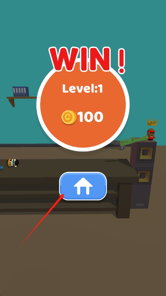 3、战斗胜利后,点击箭头按钮,进入下一关,继续挑战,同时利用获得的100金币,提升角色能力或购买道具。