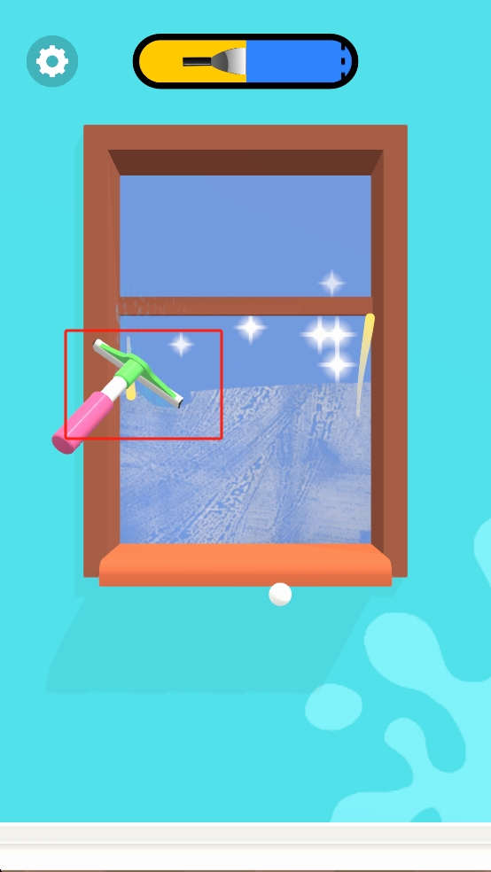 3、完成管道修复后,场景切换到窗户清洁,使用红框内的清洁工具,在窗户表面来回操作,清理污渍,使窗户恢复洁净。