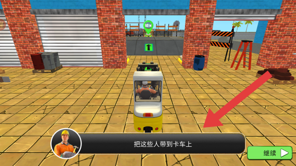 3、进入到场景中,下列有角色的文字提示:把这些人带到卡车上,玩家需要操控车辆到指定的区域。