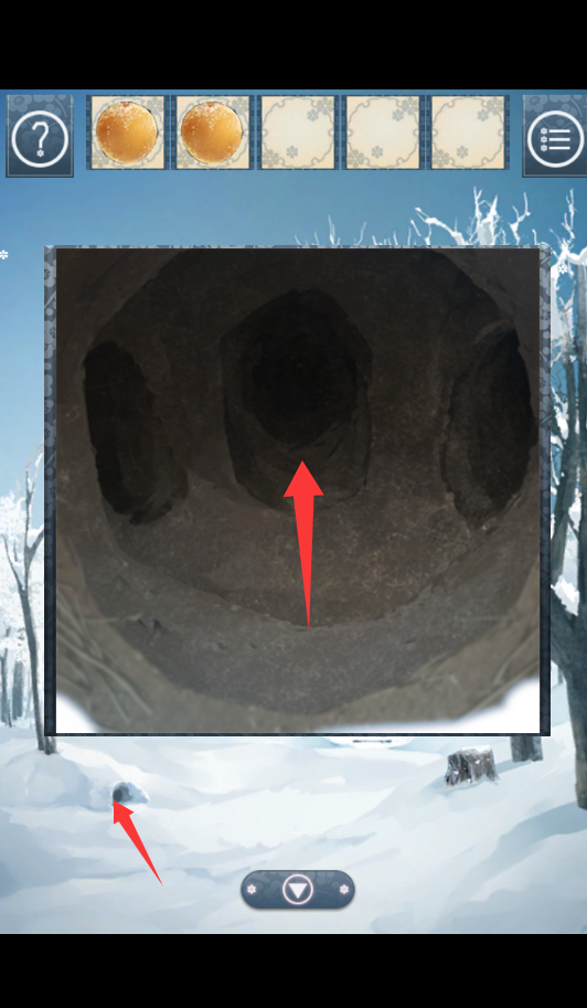 3、找出红色箭头里的山神,被雪盖住了。