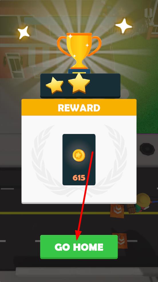 3、当车辆装不下的时候,系统将会判定关卡评级,如果车辆装除了草垛外的物品,将得不到三星评价,领取金币后点击GO HOME返回主界面。