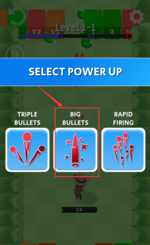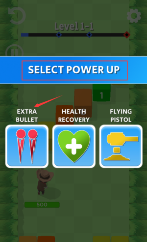 2、选择红框额外子弹,增强角色攻击能力闯关。