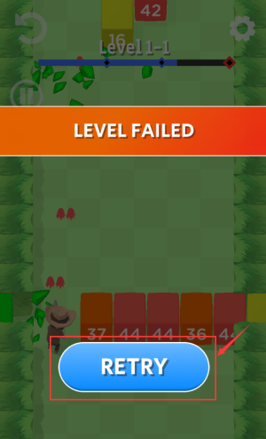 4、点击红框重试按钮,失败后重新挑战关卡。
