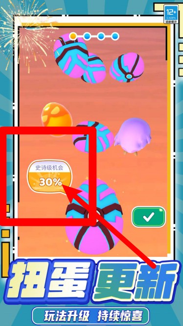 2.史诗蛋概率展示:抽蛋界面显示当前抽中史诗级彩蛋的几率百分比,随着游戏进度变化,提升收集稀有模型的机会。