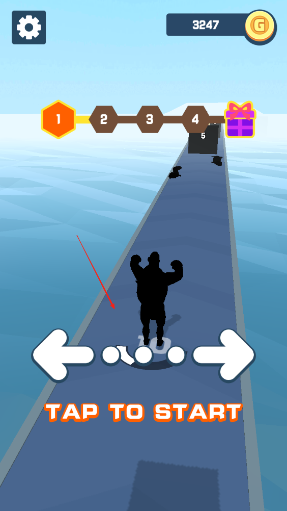 1、操控猛男在赛道上奔跑,通过左右滑动收集路边的食品,让身体变得强壮起来,注意观察脚下的数字。