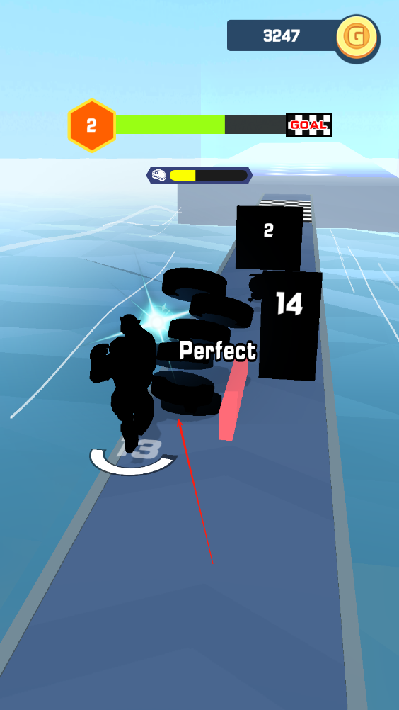 2、将脚下的数字与前方的障碍相比,只要数字比障碍大,肌肉男即可一圈击碎障碍通过。