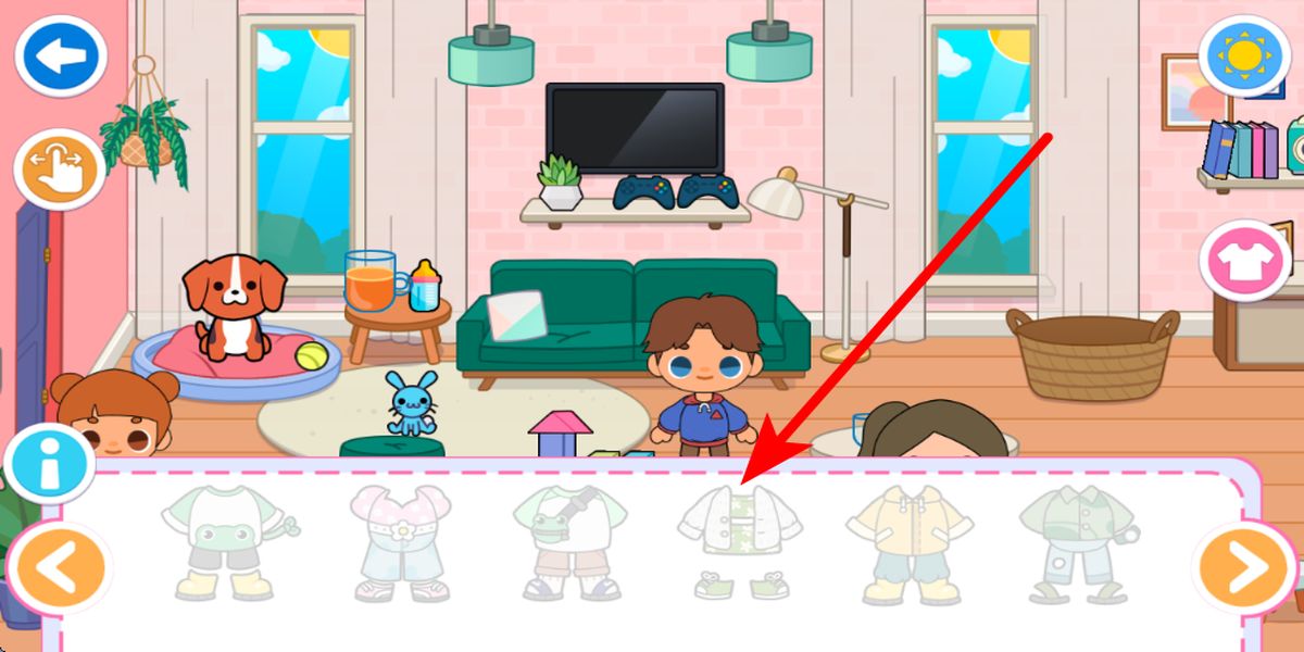 3、切换房屋场景后,下方会出现服装选择栏,这里有多样服饰可供挑选,可根据喜好为角色搭配不同服装,打造独特形象,增添趣味性与个性化体验。