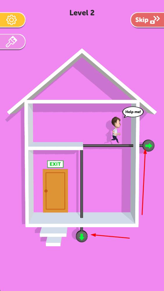 3、动脑破解难题:关卡中充满需要动脑解决的难题,玩家需观察场景、分析障碍,思考如何让小哥哥安全到达门口,这种脑力挑战既锻炼思维又带来成就感,让闯关更有意义。