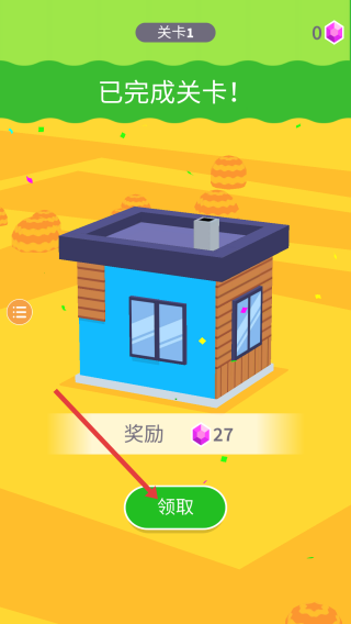 3、当房子的涂色完成后,游戏显示已完成关卡,此时点击领取按钮即可获得游戏奖励。