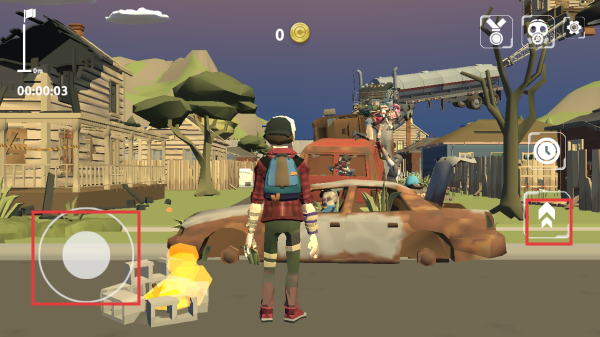 1、进入游戏后,可通过左侧摇杆控制角色移动方向,右侧按钮控制角色前进等操作,开始在场景中探索。