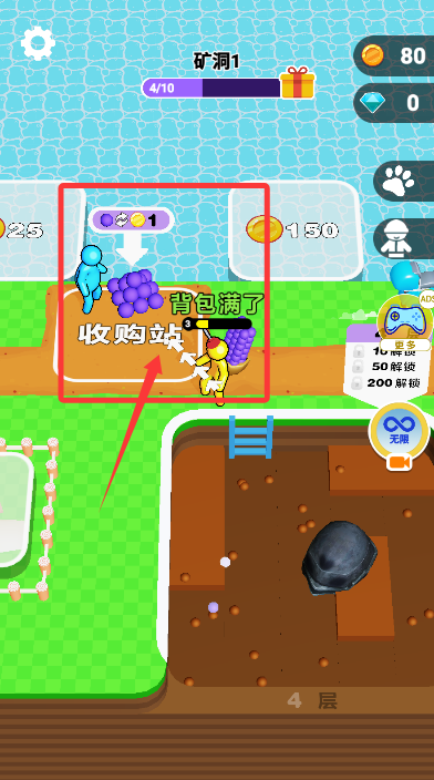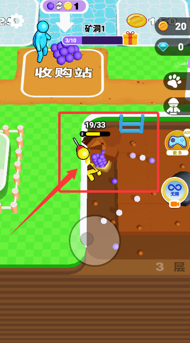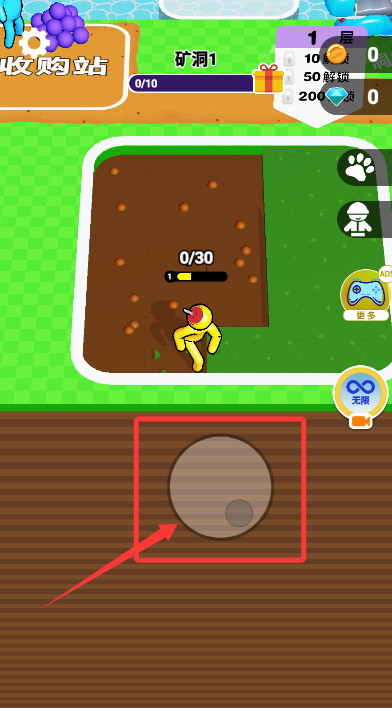 1、控制矿工深入地下,挥动镐头开凿岩层,推动挖掘进度从零逐步提升。