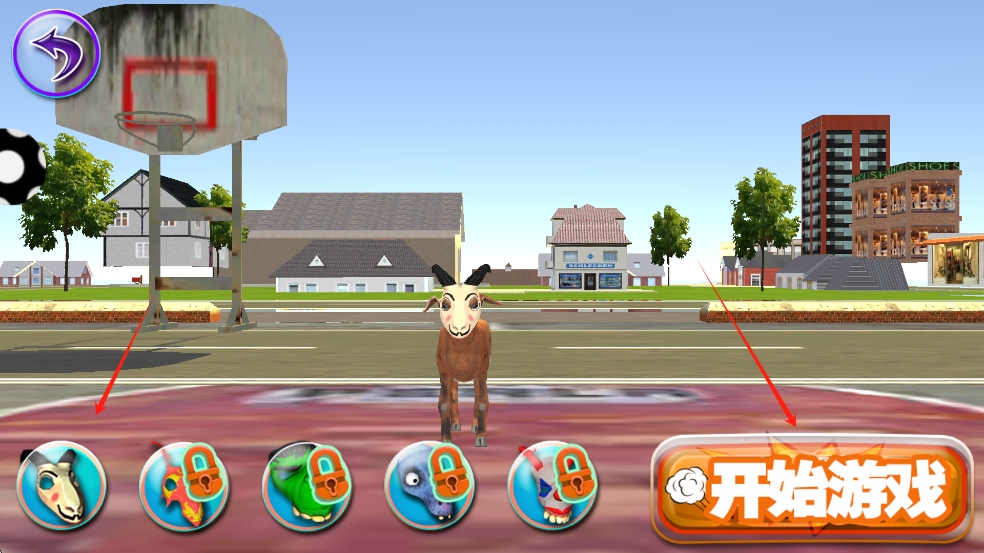 1、进入选角界面,选定山羊角色,左侧还有山羊皮肤可以选择解锁,然后点击右下角的按钮即可开始游玩。