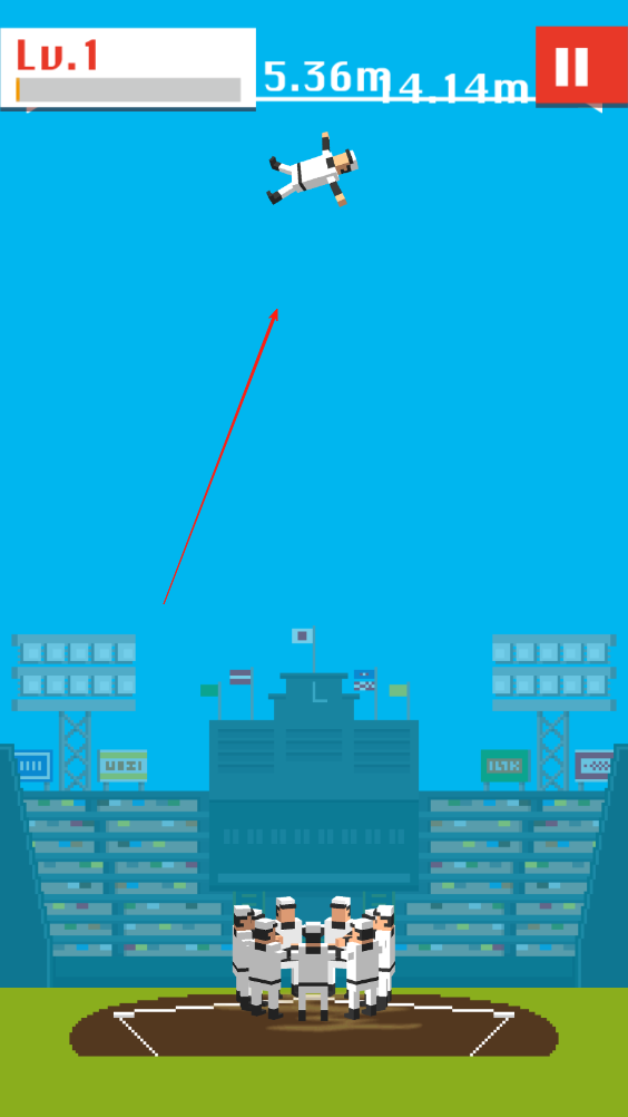 2、让社员能顺利被接住并再次抛高,仔细观察上方是否有障碍,提前预判并通过持续点击屏幕来调整抛举力度。