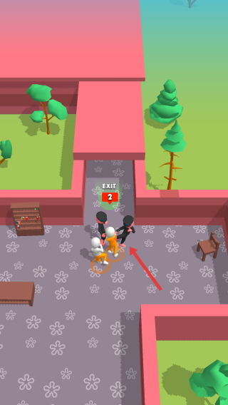 3、当你看到标有EXIT的出口时,操控角色向出口移动,碰到拦在外面的警察,靠近他们打败他们。