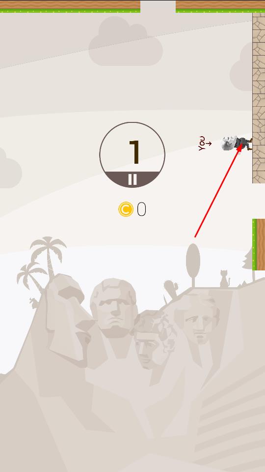 1、首先进入游戏,依据TAP TO JUMP提示,点击屏幕操控右侧灰色角色跳跃,开启关卡上方数字1标识挑战。