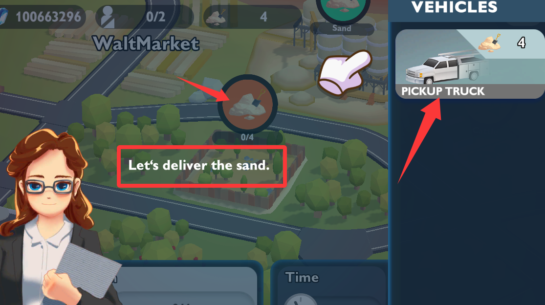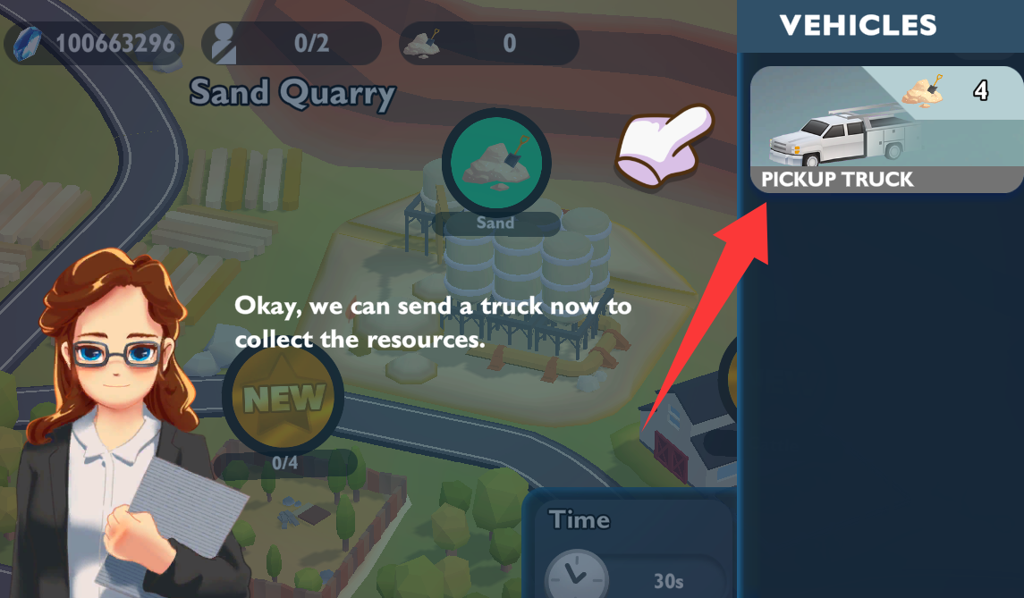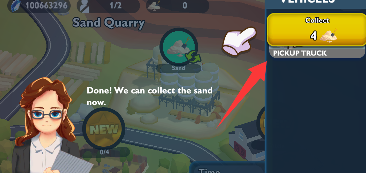 3、点击右上角的皮卡车去运送沙子。