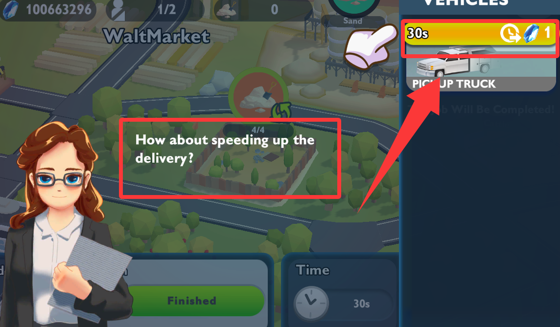 4、点击皮卡车时间需要30秒,速度怎么样。