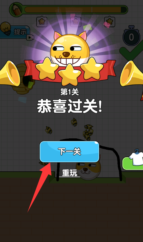 4、恭喜你过关了,哗你好棒棒啊,点击下一关继续。