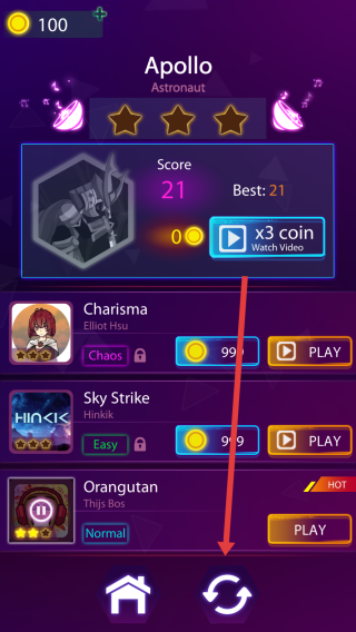 2、关卡挑战与分数目标:在不同场景(如带激光特效的清晨背景)中挑战关卡,需达到指定分数才能过关,难度随进程提升,考验节奏敏感度与动作协调性。