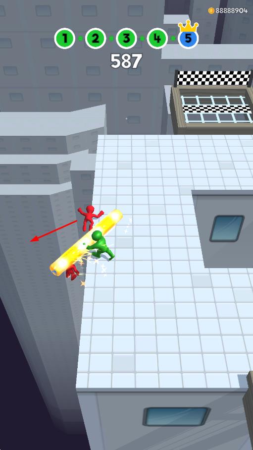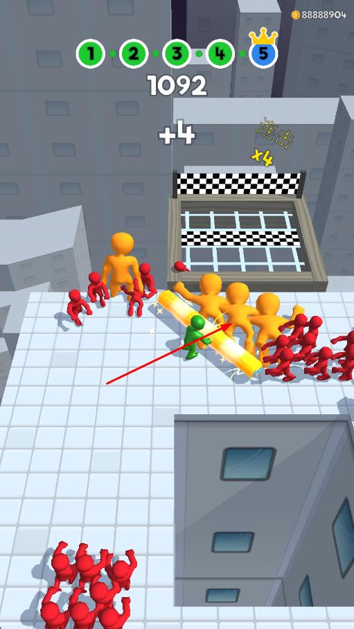 2、借力碰撞策略:利用角色移动惯性,通过撞击一个敌人引发连锁碰撞,一次性推开多个相邻敌人,提升闯关效率节省时间。