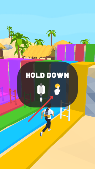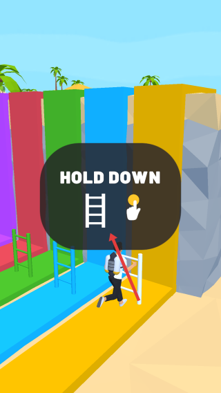 2、在奔跑过程中,当遇到梯子等攀爬障碍物时,根据游戏提示按住屏幕,使角色进行攀爬动作,顺利通过障碍物。