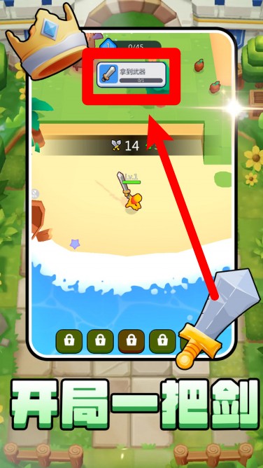 1.获得武器指令:任务栏显示“拿到武器”,玩家需快速完成引导目标,才能正式开始战斗之旅。