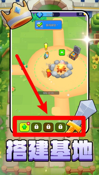 2.建设营地:通过解锁功能键逐步建造基地设施,逐步升级营地规模,提升整体作战能力和资源产出。