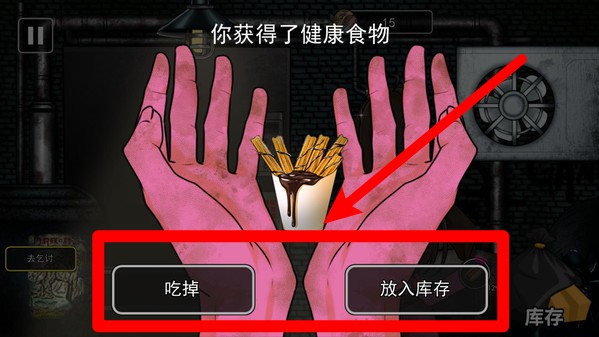 1.获得食物后出现双手画面,选择吃掉或放入库存,操作简洁又有趣。