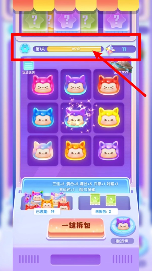 1.一键拆包操作:点击下方“一键拆包”按钮可快速打开所有未拆盲盒,收集角色或奖励,大幅提升操作效率与流畅感。