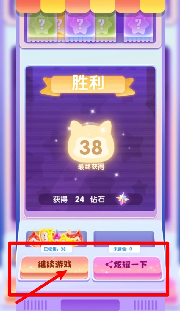3.胜利结算画面:每局结束后将显示本轮得分、钻石奖励与已收集数量,玩家可选择继续游戏或炫耀一下成果分享给好友。