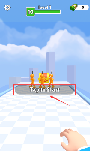 1、点击红框Tap to Start区域,开始游戏第一关挑战。