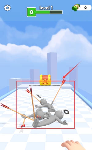 3、观察红框倒地小人,避开箭矢攻击获取宝箱。