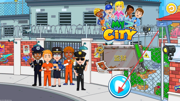1、这是My City系列游戏中的监狱主题场景,点击开始按钮,进入游戏,探索监狱及城市中的各种互动场景。