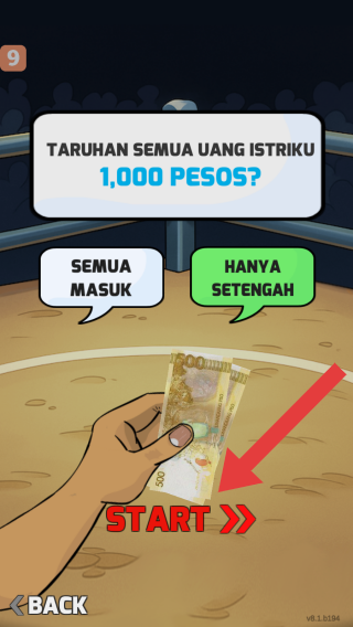 2、画面中会给出两个斗鸡的名字,需要玩家去押注其中一只斗鸡,确认后点击START方可开始。